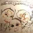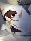Die Kissen - mit Seidenmalerei „klassisch“ bemalt - zeigen Kinder, die kriegerischen Handlungen zum Opfer gefallen sind. Die Originalfotos habe ich im Internet gefunden.
