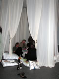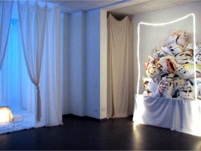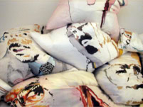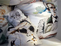Ein Raum mit 20 Seidenkissen mit den Portraits der damals 20 „schlimmsten“ herrschenden Diktatoren zum damit hinsetzen und kuscheln -