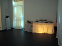 Kuschelraum, Kaffee, Kuchen, Plastikrosen, angenehme Musik mit Reden der Diktatoren (nilsmusic).