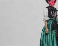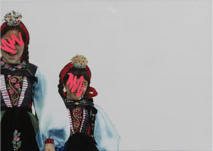 "Zwei Schwestern:" 140x100 cm, Öl auf Baumwolle, Schlagmetall, Stahlstifte, Acryl auf Karton