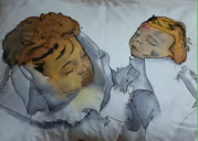 Die Kissen - mit Seidenmalerei „klassisch“ bemalt - zeigen Kinder, die kriegerischen Handlungen zum Opfer gefallen sind. Die Originalfotos habe ich im Internet gefunden.